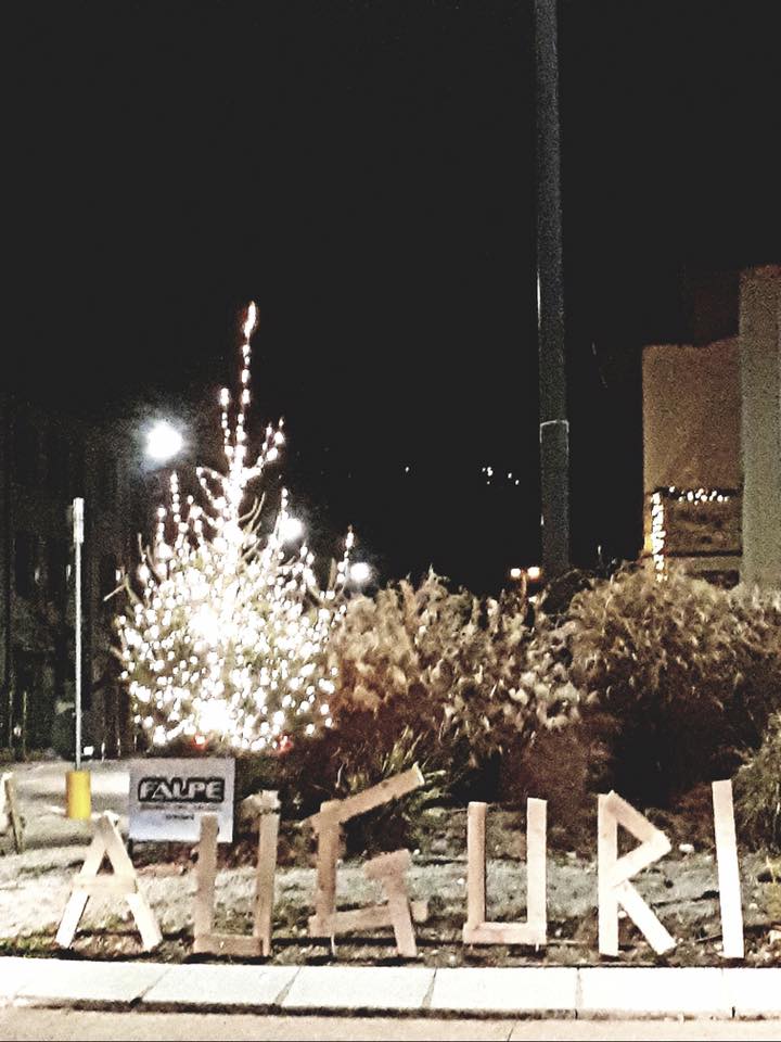 3° week-end di Natale: Nel giorno di Santa Lucia abbiamo voluto realizzare un allestimento natalizio addobbando la nostra rotatoria con albero magnifico decorato con 1000 luci e con 3 scritte di Auguri che accolgono tutti coloro che arrivano nei pressi della nostra azienda.