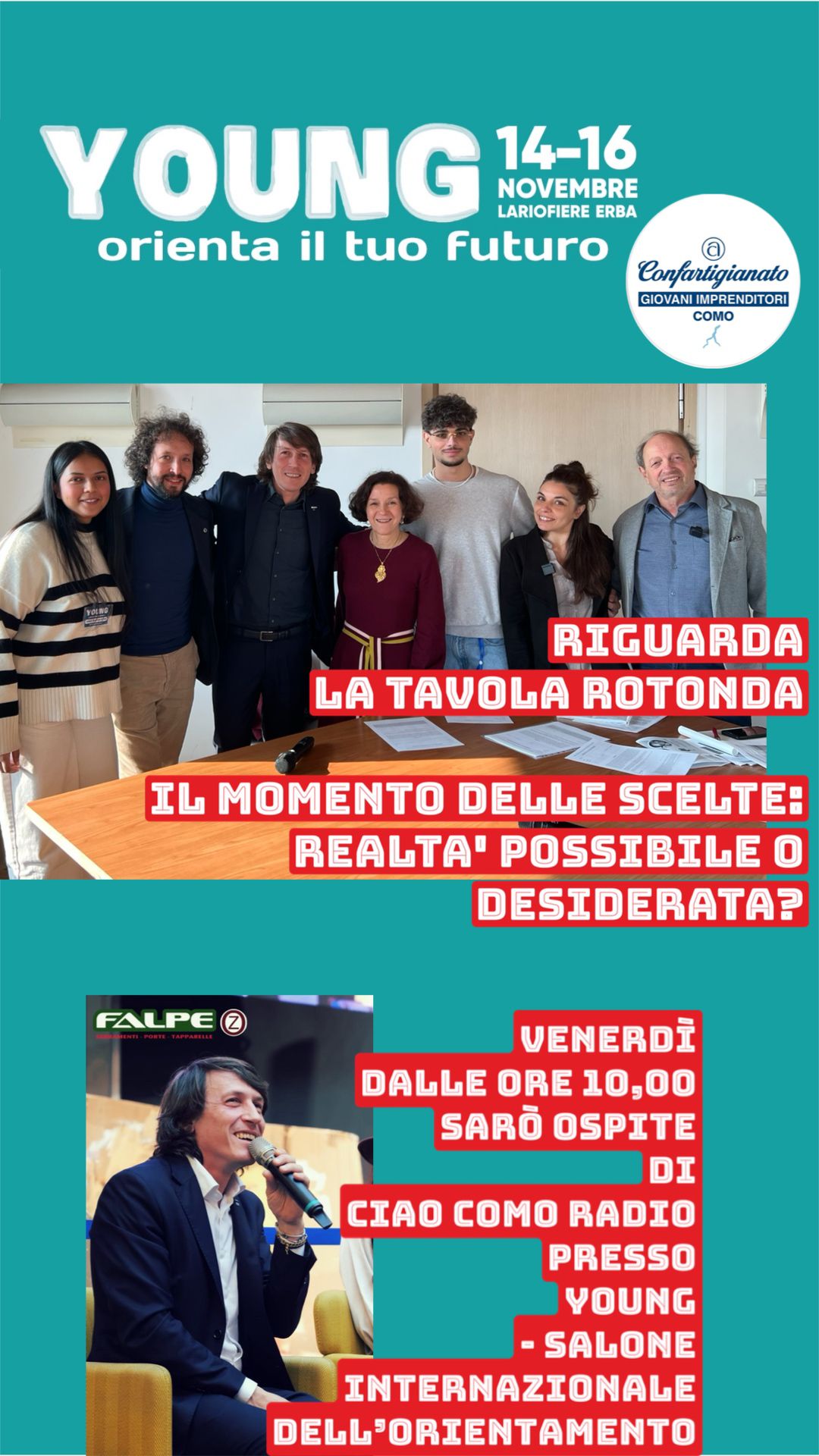 Zappa ha anche lanciato la proposta di creare un collegamento diretto tra la Mostra Artigianato e Young, il Salone dell’Orientamento in agenda dal 14 al 16 novembre sempre a Lariofiere: «L’ideale è promuovere maggiormente la nostra mostra artigiana nelle scuole per far conoscere le realtà aziendali ai ragazzi, ma anche incrementare la presenza degli artigiani a Young. Questo centro espositivo ha due fiere di altissimo livello a breve distanza temporale, entrambe molto importanti per i rispettivi settori. Creare sinergie è un’occasione per rispondere ai bisogni delle aziende che hanno la necessità di farsi conoscere dai ragazzi delle scuole».