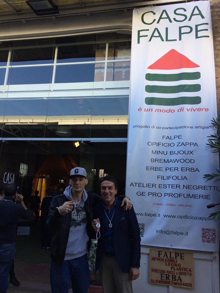 CasaFalpe al Fuorisalone:Emozionante è stata la visita di Davide Van de Sfroos che per noi comaschi è qualcosa di più di un cantautore famoso, rappresenta e incarna con le sue canzoni la storia e le tradizioni del nostro Lago di Como. Vederlo entrare a #CasaFalpe mentre si trovata in Tortona per pubblicizzare il suo concerto di Giugno nello stadio di San Siro a Milano, perchè aveva saputo che lì, in Via Tortona 31, c’era un’azienda artigiana comasca è stata una vera sorpresa. Entrato, ha voluto suonare il basso che Enrico ha lasciato a disposizione dei visitatori, proprio all’interno di #CasaFalpe.