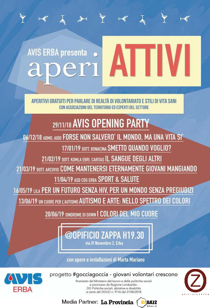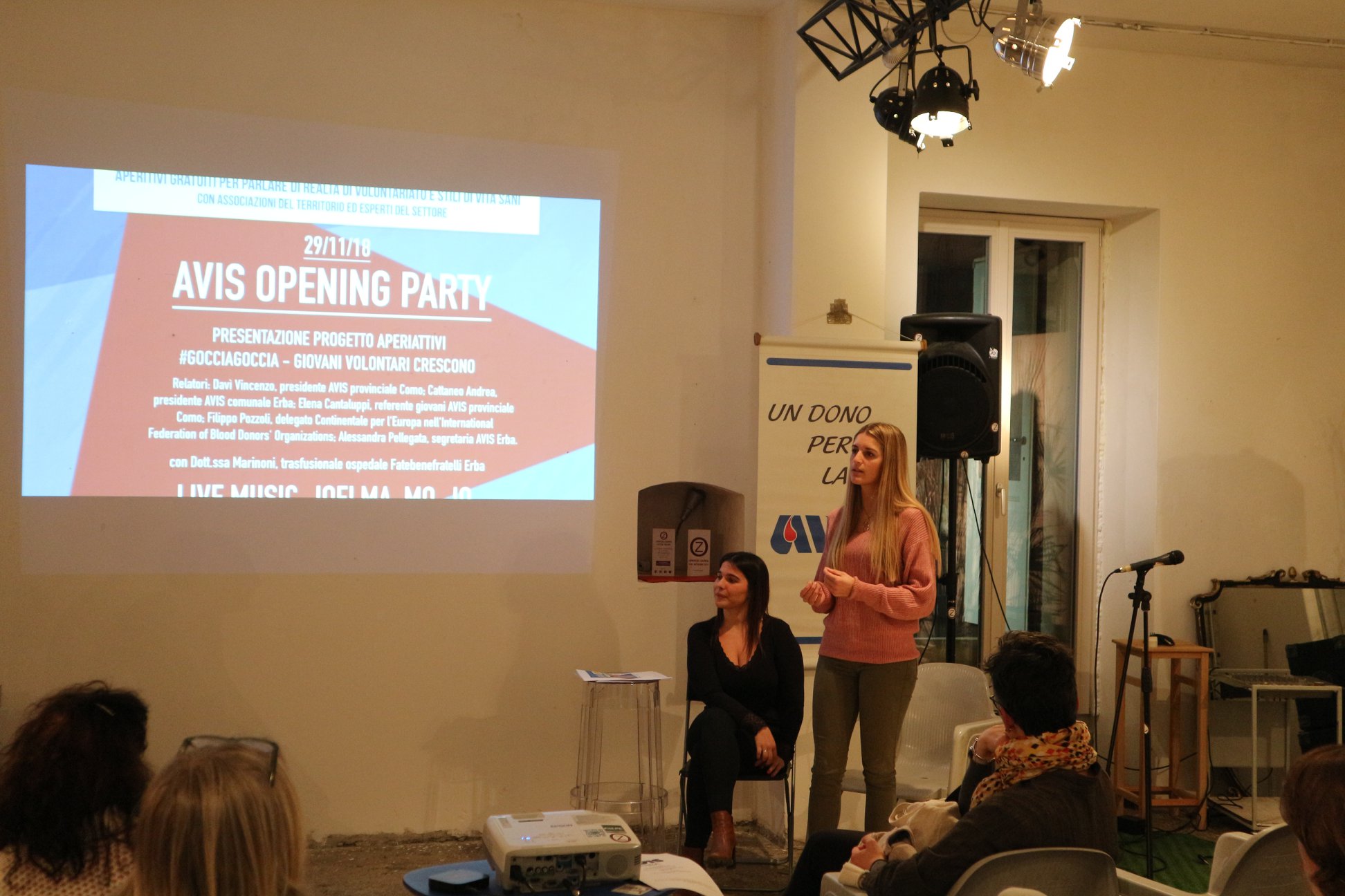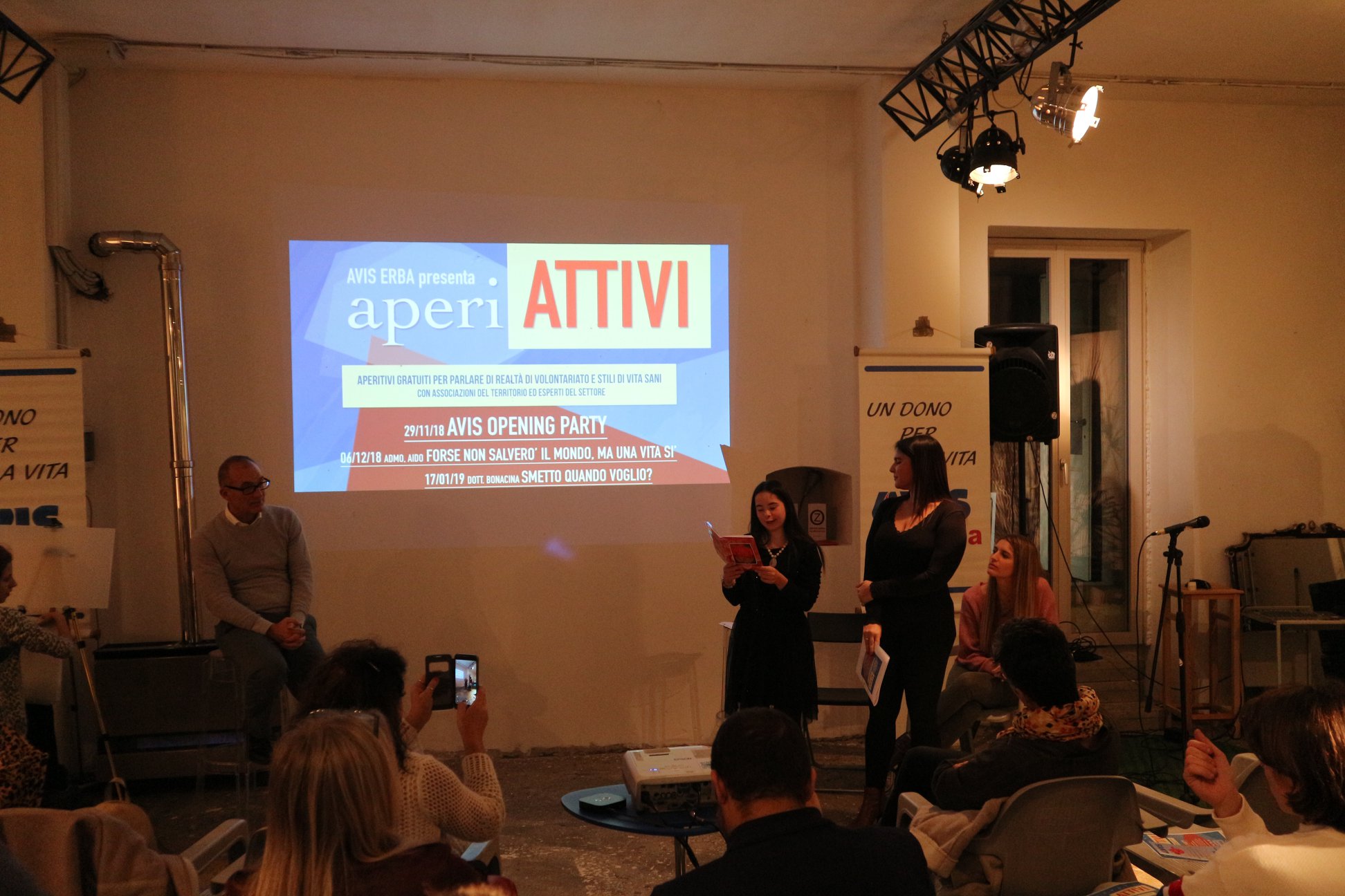Ieri sera, giovedì 29 novembre,  si è svolta la prima serata di AperiAttivi, promossi da Avis Erba e nati dall’idea del Gruppo Giovani Avis Erba di realizzare il progetto #Gocciagoccia – giovani volontari crescono, finanziato dal Ministero del lavoro e delle politiche sociali e promosso da Regione Lombardia, di cui vi abbiamo raccontato qui.