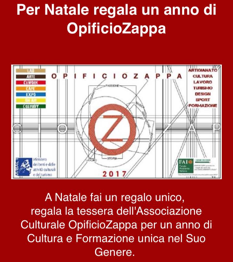 E se per Natale vuoi fare un regalo unico, regala la Tessera dell’Associazione Culturale OpificioZappa per un anno di Cultura e Formazione unica nel Suo Genere.