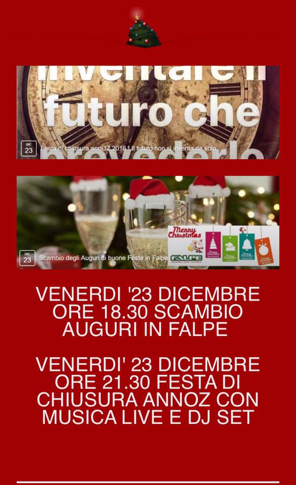 Venerdì sarà sarà una serata di festa per tutta la Città Falpe e dopo l’aperitivo nel “Filanda Show-room FALPE”, inizieranno i festeggiamenti dell’Opificio Zappa! Per chi volesse proseguire nei festeggiamenti insieme a noi, dalle 21.00 il nostro spazio OpificioZappa aprirà i battenti per festeggiare ancora tutti assieme con musica live e dj set!! Sarà una “Festa di chiusura annOZ 2016 !