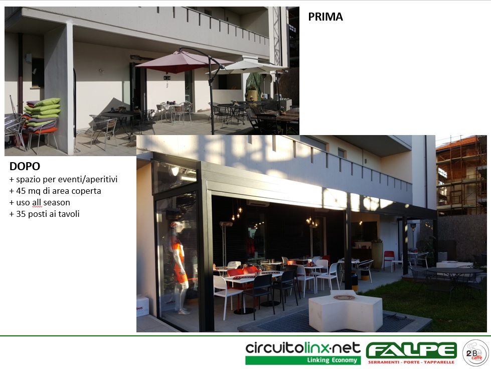 SUCCESSO APERILINX, La curiosità e l’attenzione alla nostra realtà è stata dimostrata anche dall’ottima presentazione ad opera del Responsabile Commerciale di FALPE, Daniele Riva che ha esposto in modo concreto il “case study” che ha visto FALPE protagonista della vendita di una veranda per esterni “Med Quadra” di Gibus, installata ad un affiliato al circuito, il bar “2 Ruote bike cafè” di Giussano-MB.