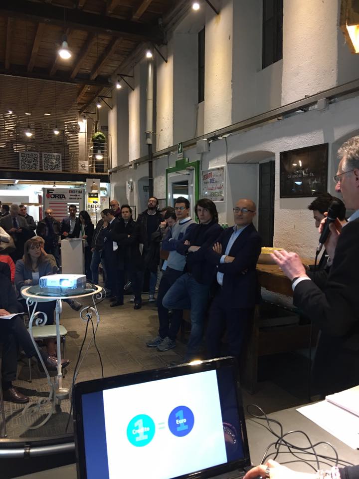 Daniele Riva ha saputo attrarre l’attenzione dei presenti, illustrando in modo puntuale e preciso il particolare accordo commerciale di cui siamo stati protagonisti nello scorso mese di Novembre 2016 e che ha consentito di concludere una vendita in modo molto competitivo. Il valore iniziale di 24.000 Euro, grazie ad uno sconto che FALPE ha riservato al cliente membro del Circuito è sceso a 21.500 Euro e mediante il pagamento di una parte equivalente al 30% in Lix, pari a 6000 Linx, è stato effettuato il saldo di soli 15.000 Euro. Ciò ha generato un indiscutibile valore per le parti che hanno potuto attivare l’investimento con esborsi indubbiamente più sostenibili da un lato e generando una capacità di spesa di Linx interessante che FALPE ha già potuto utilizzare per gli acquisti dell’azienda dall’altro.